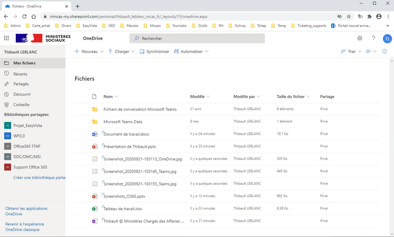 OneDrive est un espace de stockage de documents personnels dans le cloud, accessible depuis le poste de travail, le terminal mobile, avec possibilité de partager des documents avec des collaborateurs.