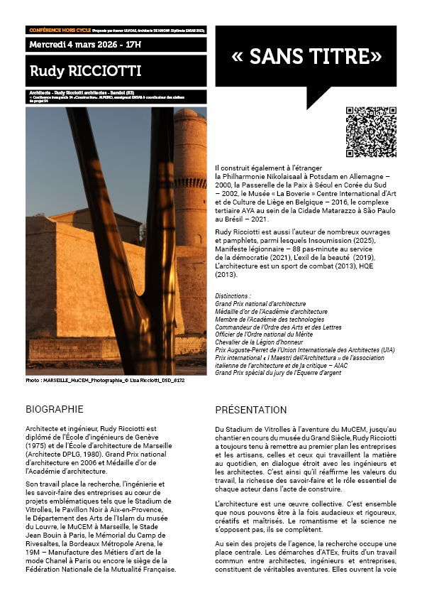 Conférence hors cycle inaugurale S4 : Mercredi 4 mars 2026, à 17h