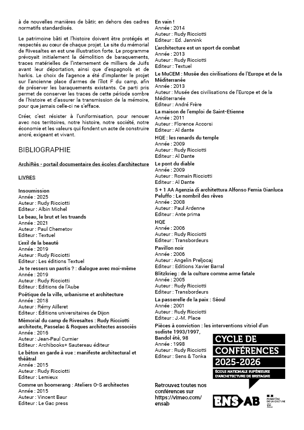 Retrouvez la liste des conférenciers accueillis depuis 1987 par l’ENSAB