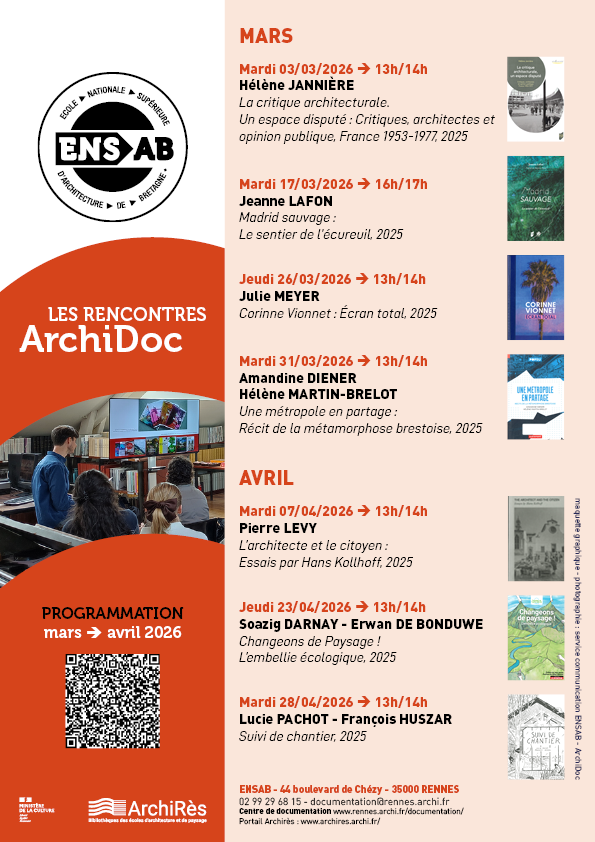 Le Centre de documentation de l’ENSAB présente la nouvelle programmation ArchiDoc – mars & avril 2026.