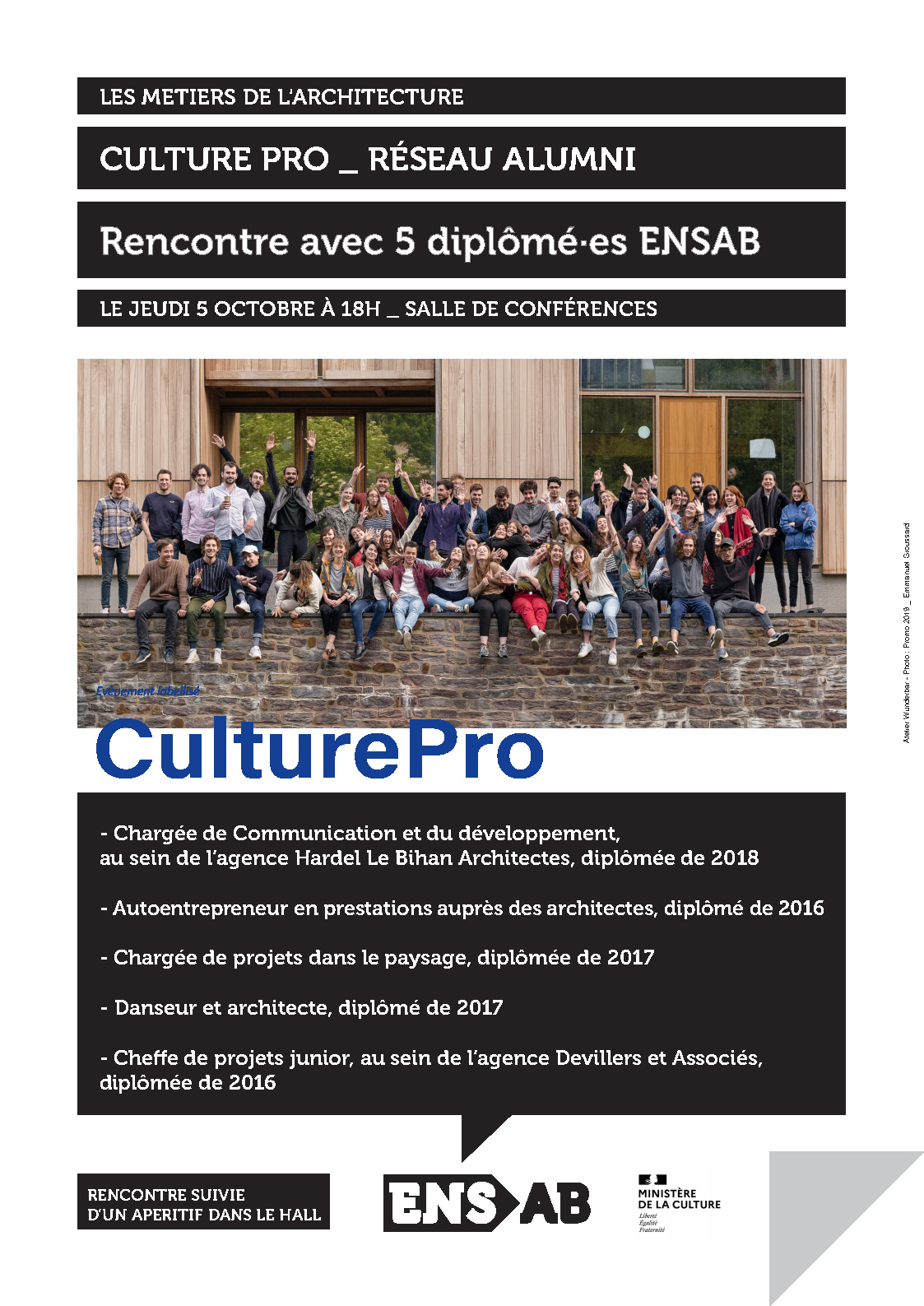 Rencontre avec 5 diplômé·es ENSAB, le jeudi 5 octobre 2023 à 18h, en salle de conférences.