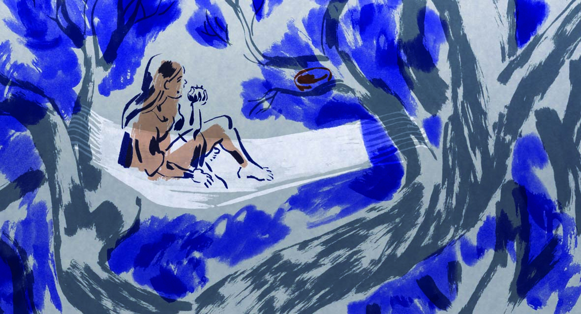 De cet implacable récit, métaphore de la noirceur de l’âme humaine, Sébastien Laudenbach tire un film d’animation lumineux. Les silhouettes, suggérées en quelques traits sûrs et gracieux, se forment et se défont : le mouvement des corps est aussi celui du dessin en train de naître. Dans ce tableau si vivant, aéré par un vaste fond blanc, les couleurs surgissent en léger décalage, en transparence, en superposition. Elles animent de bleu profond le feuillage d’un arbre, le rouge alarmant d’une traînée de sang…