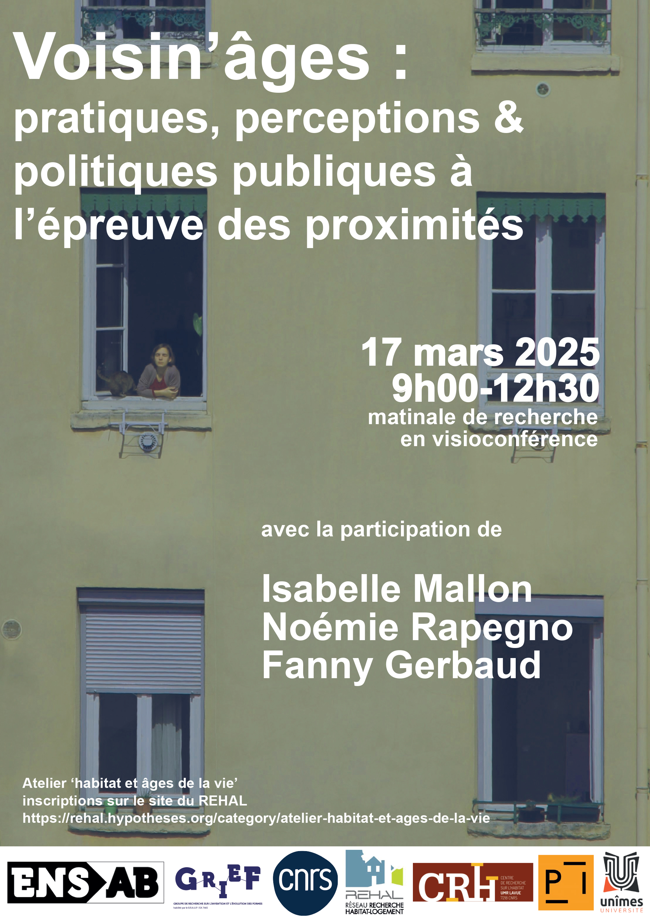 Le groupe du REHAL “HAGEVIE” organise des matinales afin de faire discuter des enquêtes croisant habitat et âges. Cette série de matinales invite les sociologues, urbanistes, designers, architectes, géographes à partager leurs questionnements, intérêts, terrains. Cette nouvelle matinale propose de poursuivre l’étude de l’habitat par le prisme du Voisin-âges : pratiques, perceptions et politiques publiques à l’épreuve des proximités.