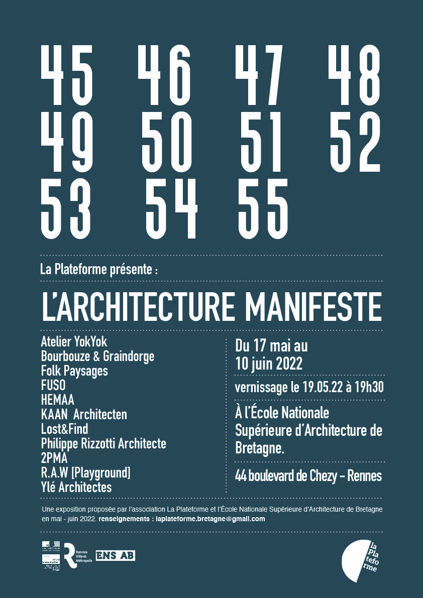 Avec l’exposition l’Architecture Manifeste, l’association La Plateforme réitère la commande auprès d’agences, de collectifs et de groupements. L’occasion de les interroger sur leur pratique conceptuelle, de l’illustrer et d’en extraire la Rabelaisienne substantifique moelle.
