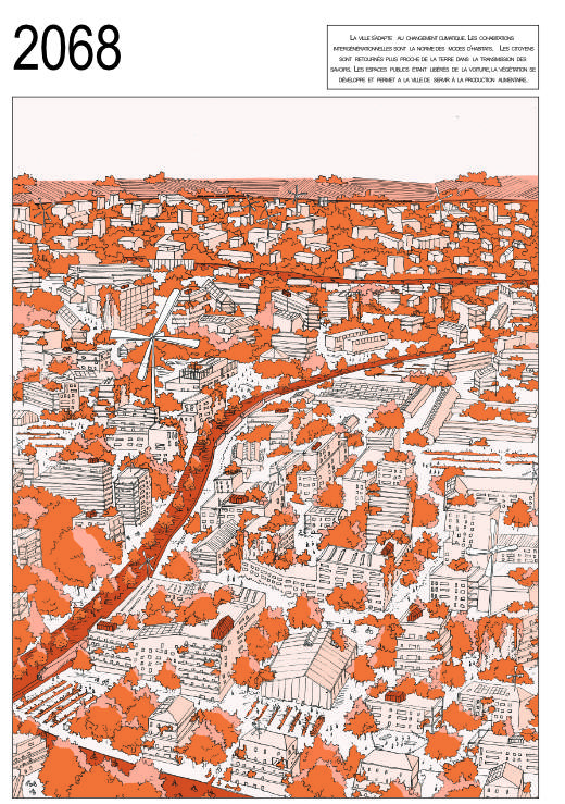 Résilience 68, c’est l’image d’une population qui s’adapte, qui apprend de ses erreurs, renouant avec la nature, et la fait entrer au cœur des villes et des esprits. La couleur évoque le changement qui vient se multiplier.
